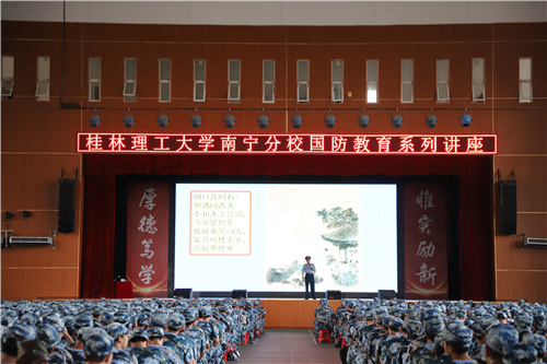 为深化我校全民国防教育,增强师生国防观念,弘扬爱国主义精神,深切感受我国国防和军队现代化建设的伟大成就。9月23日、24日,南宁分校邀请国防教育专家、空军大校李国强教授来校开展题为《国防在我心中》和《航天梦,强国梦》的国防教育讲座,国家安全与国防教育教研室教师代表、军训团全体教官、2025级军训团全体新生共4500余人参加讲座。