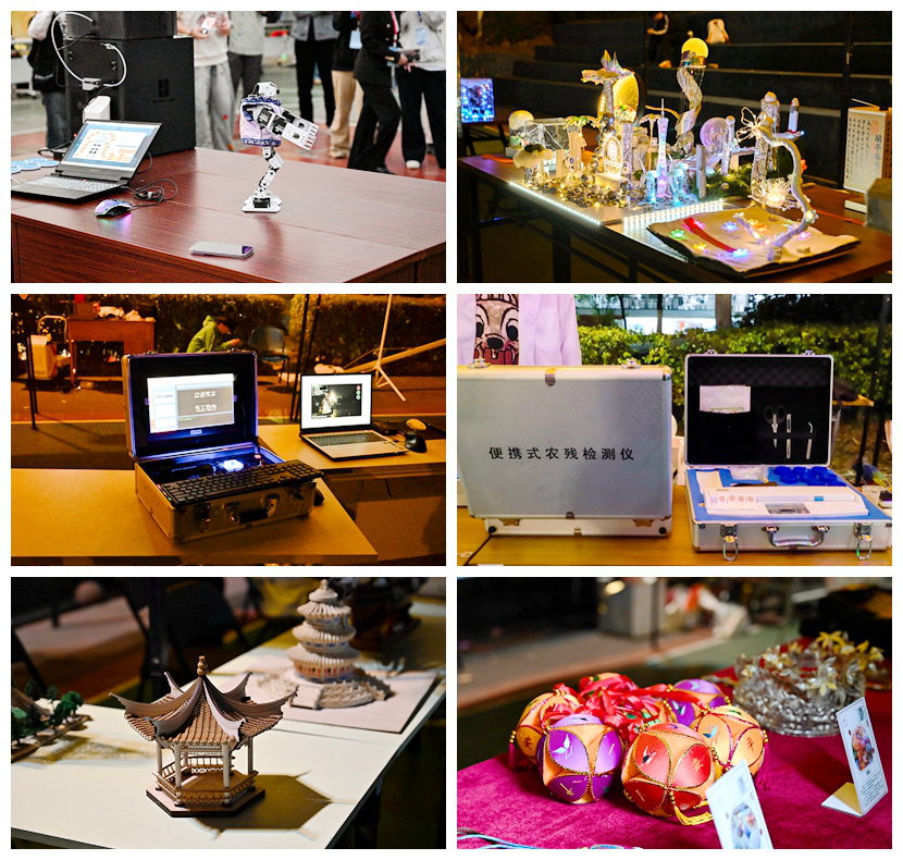 本次科技作品展以“我敢闯 我会创”为主题,设有“创新大赛国赛、区金项目”“国家级大创立项”“六院科技作品”三大特色展区,展出富有创新思维和实用性的科技作品300余件。参展作品内容涵盖人工智能、智能制造等多个领域,构思新颖、实用性强,充分彰显南宁分校学子扎实的专业知识功底、活跃的创新思维能力和学科专业交叉融合的实践成效,共吸引近4000余名师生到场参观。