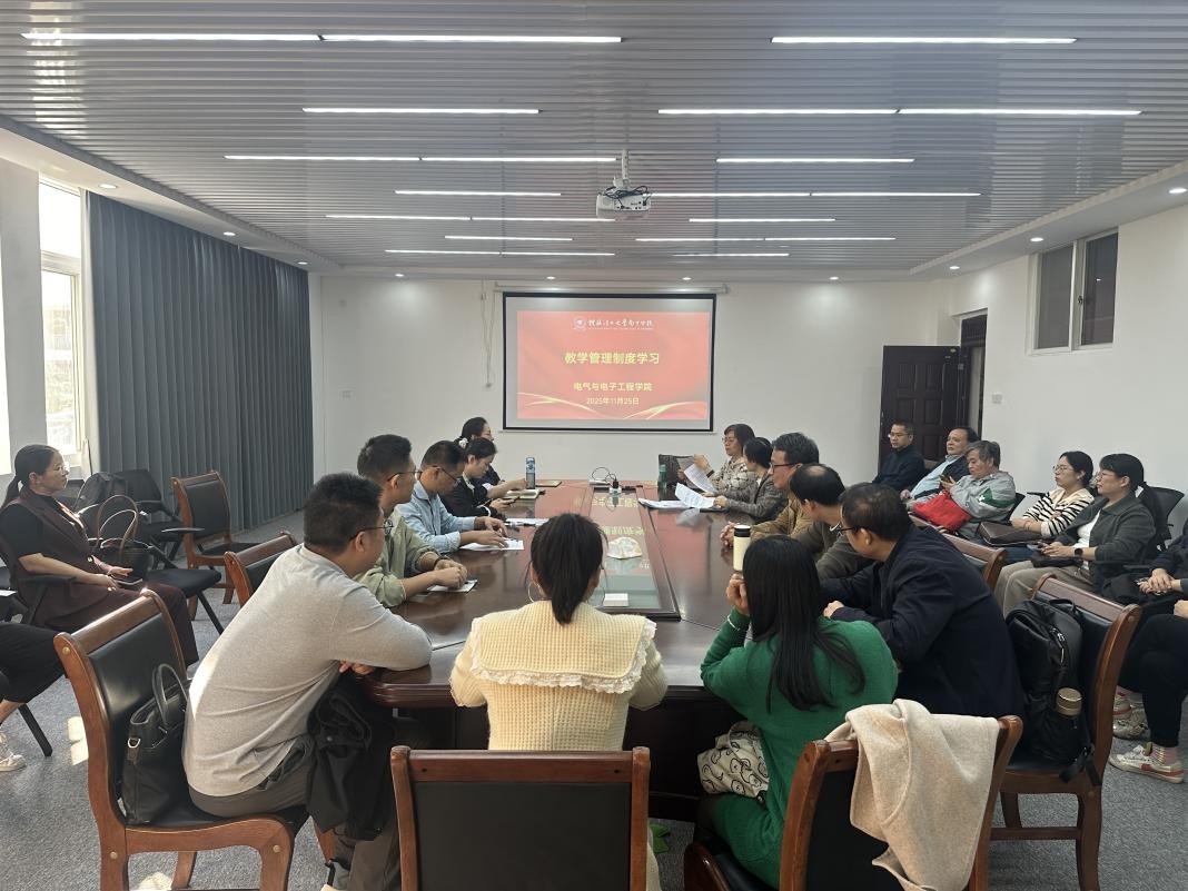 为进一步深化全体教师对教学管理规章制度的理解与掌握,切实提升学院教学管理规范化水平,11月25日下午,学院在4205教室组织召开了教学管理制度专题学习会。会议由学院副院长潘艳荣主持,全体专任教师参加。