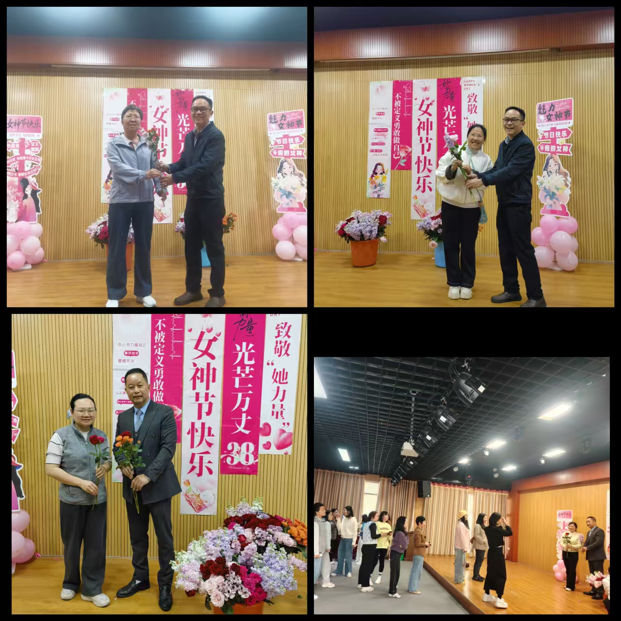 活动伊始,分校领导与工会代表为在场每一位女教职工献上鲜花与节日祝福,向长期坚守在教学、管理、服务一线的巾帼园丁致以崇高敬意,感谢大家在学校建设发展中展现的责任担当与巾帼力量。温馨的献花环节暖意融融,现场花香四溢、掌声不断,充分传递出学校对女教职工的关怀与礼遇。