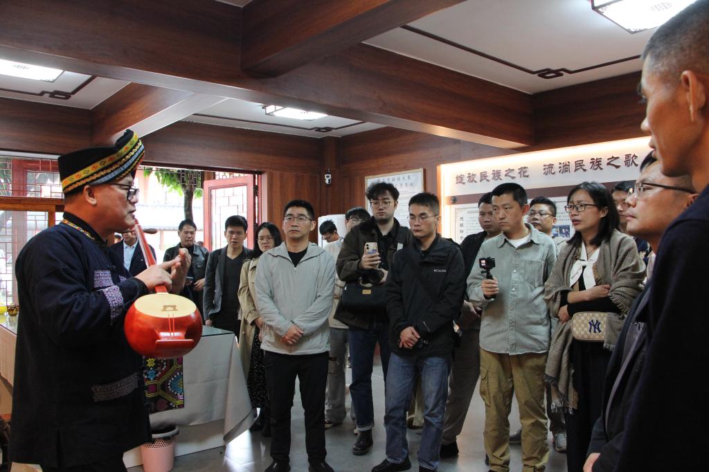 下午的非遗文化体验环节丰富多彩。教职工们参观了李素英龙州壮锦工作室,聆听全国民族团结进步示范个人秦华北讲授天琴艺术,并欣赏了精彩的天琴演奏。随后,大家参观了古朴的壮寨,沿着红军古道徒步,在实践体验中感悟革命精神与民族文化的交融。