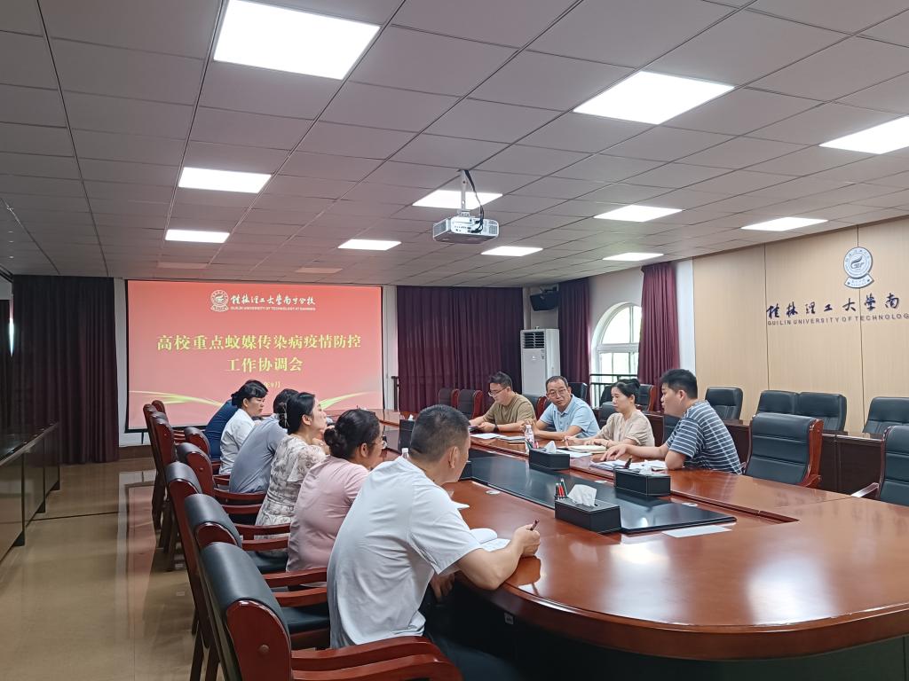 为切实保障师生健康,营造安全良好的校园环境,南宁分校于9月10日上午,在行政楼416会议室召开了基孔肯雅热等蚊媒传染病防控工作协调会。由刘高鹏副校长主持会议并讲话,学校后勤管理部、学生工作部、保卫部、校医院及物业等相关职能部门负责人参加会议。
