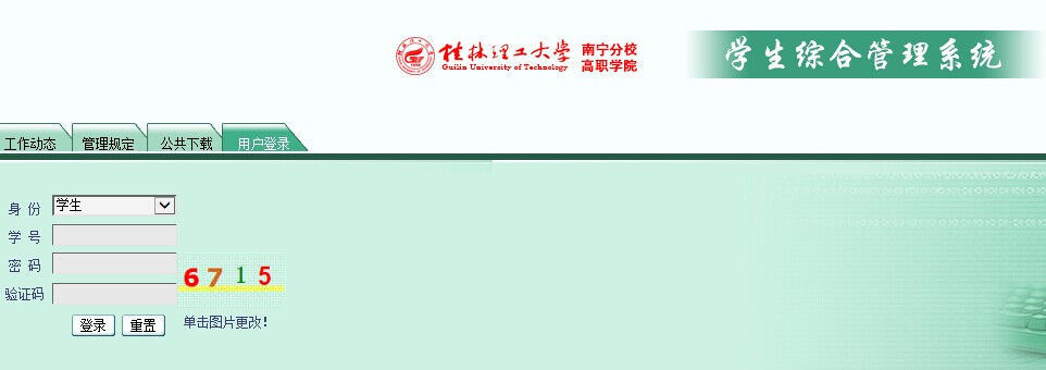 ①打开“学生综合管理”系统界面,请以“学生身份”,输入学号,学号作为帐号及密码登录。