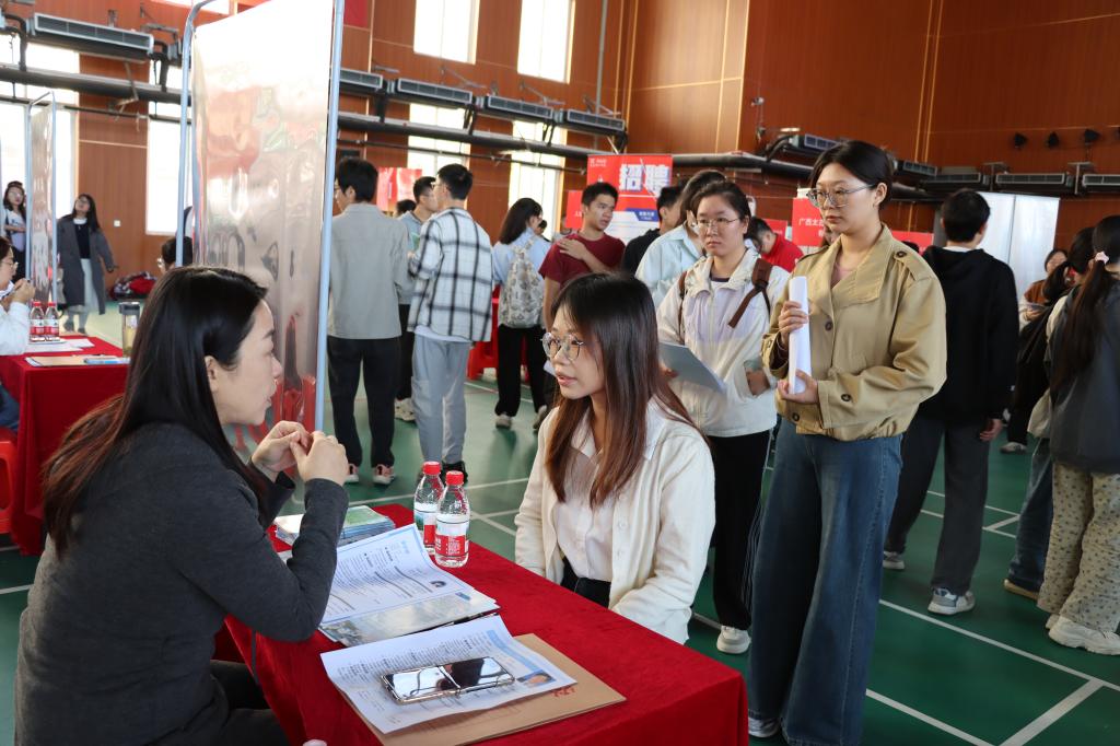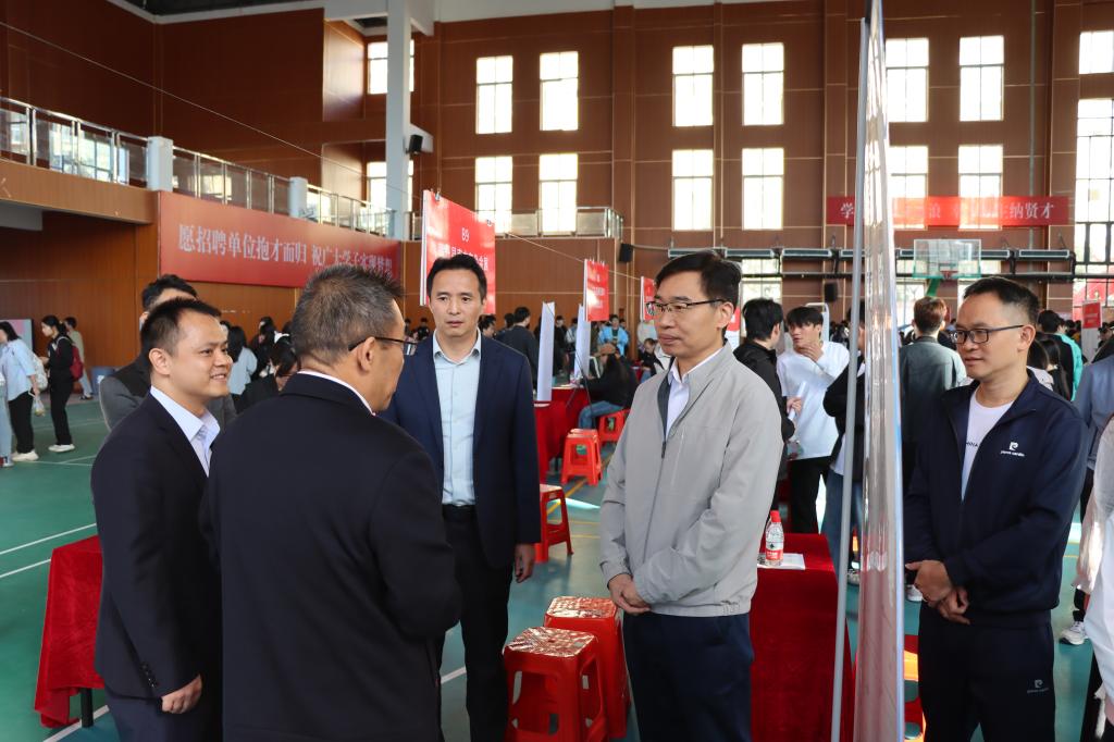 南宁分校领导深入双选会现场,与相关地方人社部门和用人单位亲切交流,了解用人单位的发展规划、引才政策和人才需求,认真听取用人单位对南宁分校人才培养工作的意见建议;同时与毕业生亲切交谈,勉励毕业生抓住秋季双选会的关键期,把握机遇,积极求职应聘。