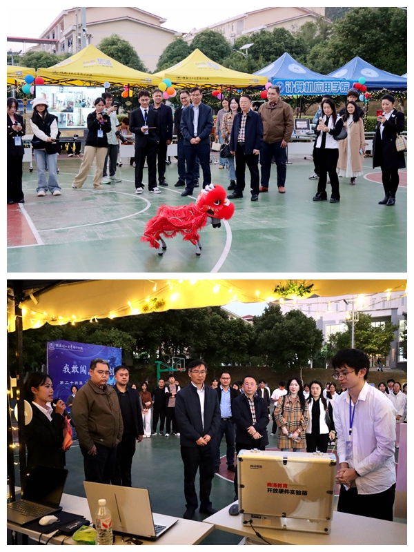 活动期间,南宁分校领导及嘉宾依次参观各展区,认真观看学生作品展示,详细了解项目作品的设计思路、工作原理、技术创新点及应用前景,就展示项目作品后期研究给予了指导意见,同时勉励同学们积极参与到各类科研项目中来,不断提升个人的科研素养和创新实践能力。
