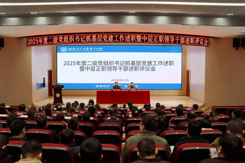 1月6日上午,南宁分校在空港校区8408报告厅召开2025年度二级党组织书记抓基层党建工作述职暨中层正职领导干部述职评议会。学校校长助理,南宁分校党委副书记、校长张树光,南宁分校在家领导陈小波、唐承泽、苏欣、肖彩霞、马华菊、李培良、刘高鹏出席会议。南宁分校校长助理、全体中层干部,教职工代表参加会议。会议由南宁分校党委书记陈小波主持。