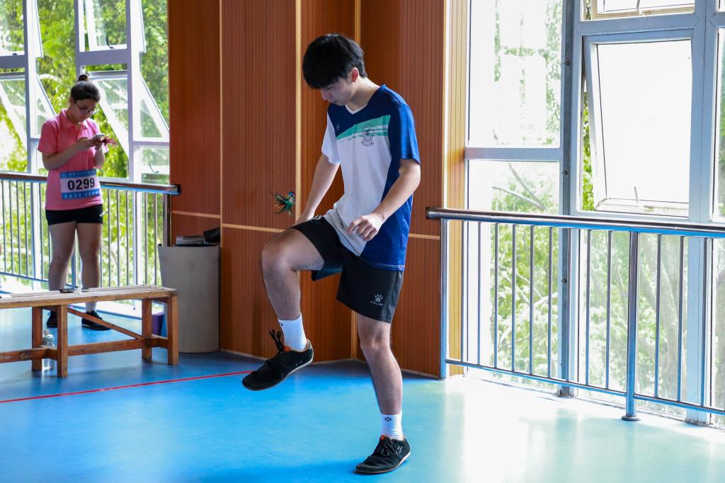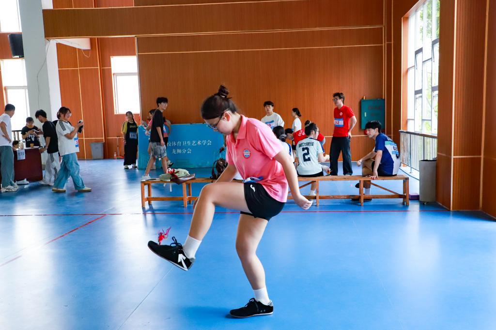 以毽球飞舞展现灵动身姿。体育馆内,毽球单人计数赛精彩纷呈,选手们脚法娴熟、身姿轻盈,小小毽球在脚尖、膝间、头顶灵活翻飞,尽显精湛技艺;混合团体接力赛中,队员们默契交接、奋力奔跑,将个人技巧与团队协作完美融合,赛场氛围热烈高涨。
