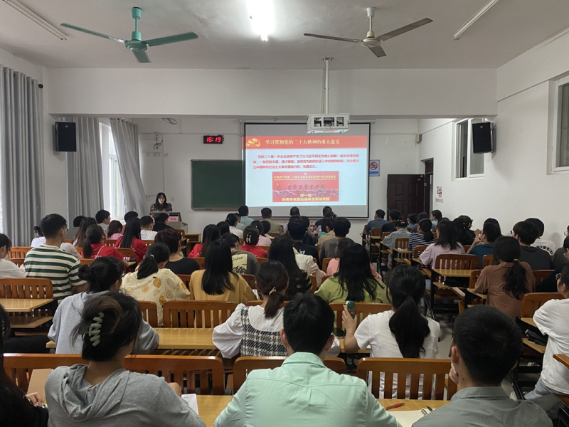 1月22日下午,南宁分校副校长马华菊在空港校区探源楼5206教室参加所在党支部党员大会,结合自身学习心得体会,为教务管理部、现代教育技术中心、冶金与资源工程系第三党支部师生党员、入党积极分子专题辅导学习宣传贯彻党的二十大精神。