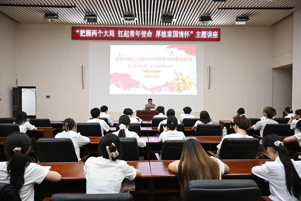 报告中,陈小波深刻阐释“两个大局”的丰富内涵与时代意义,深入剖析二者相互交织、相互激荡的辩证关系,指出中华民族伟大复兴为世界变局注入强劲正能量,也为我们带来重大机遇与挑战。他寄语广大青年学生,要摒弃消极心态,将个人成长融入国家发展大局,坚定理想信念、锤炼过硬本领、拓宽国际视野,以实干担当践行青春使命,在服务国家发展、助力民族复兴的征程中贡献青年力量。