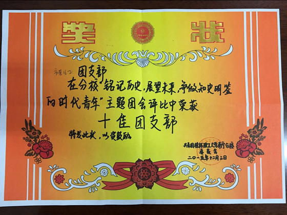 12月3日下午,南宁分校团委在空港校区启智楼308教室举行“铭记历史展望未来”主题团会PPT大赛,我系市营15-2班、酒管15-3班、财管15-3班、酒管15-1班四个团支部在比赛中展示了主题团会的开展情况和特色活动,并同时获得“十佳团支部”荣誉称号。