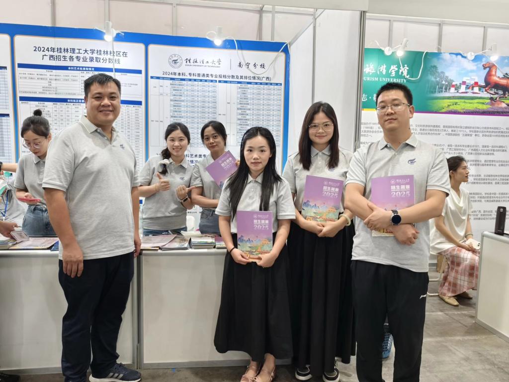 6月27日,由广西招生考试院主办的2025年广西普通高校招生咨询会在桂林甲天下会展中心举行。经济与管理学院教师代表秦敏、邓波老师参与现场招生工作。