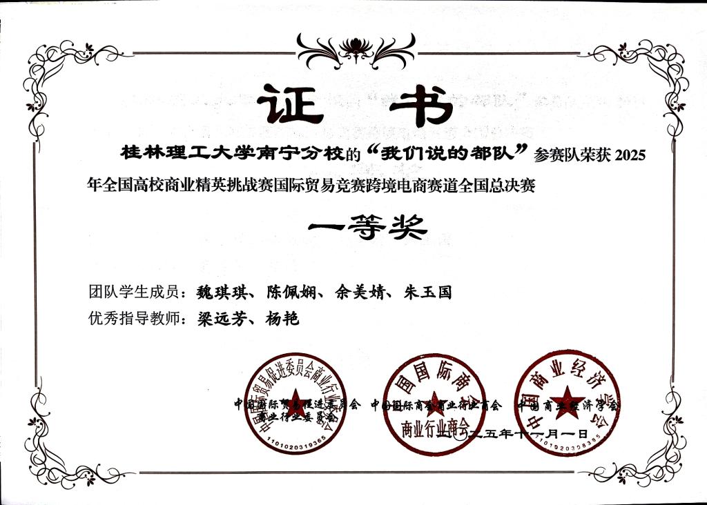 近日,2025年全国高校商业精英挑战赛国际贸易竞赛跨境电商赛道全国总决赛圆满落幕。学院学子在比赛中喜获一等奖3项。