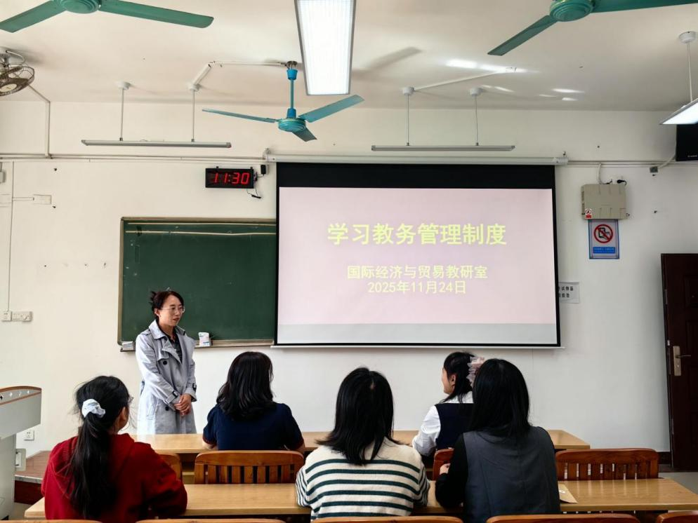 为进一步规范教学管理、提升教师教学能力,近日,国际经济与贸易教研室组织全体教师开展教学文件专题学习活动,围绕《桂林理工大学生修业年限管理办法》《桂林理工大学南宁分校教学工作规范》《桂林理工大学教材管理实施细则》《桂林理工大学南宁分校学生参加各类竞赛管理办法》等教学制度文件,以及新版人才培养方案、教学质量评价标准等核心文件进行系统学习与深入研讨。