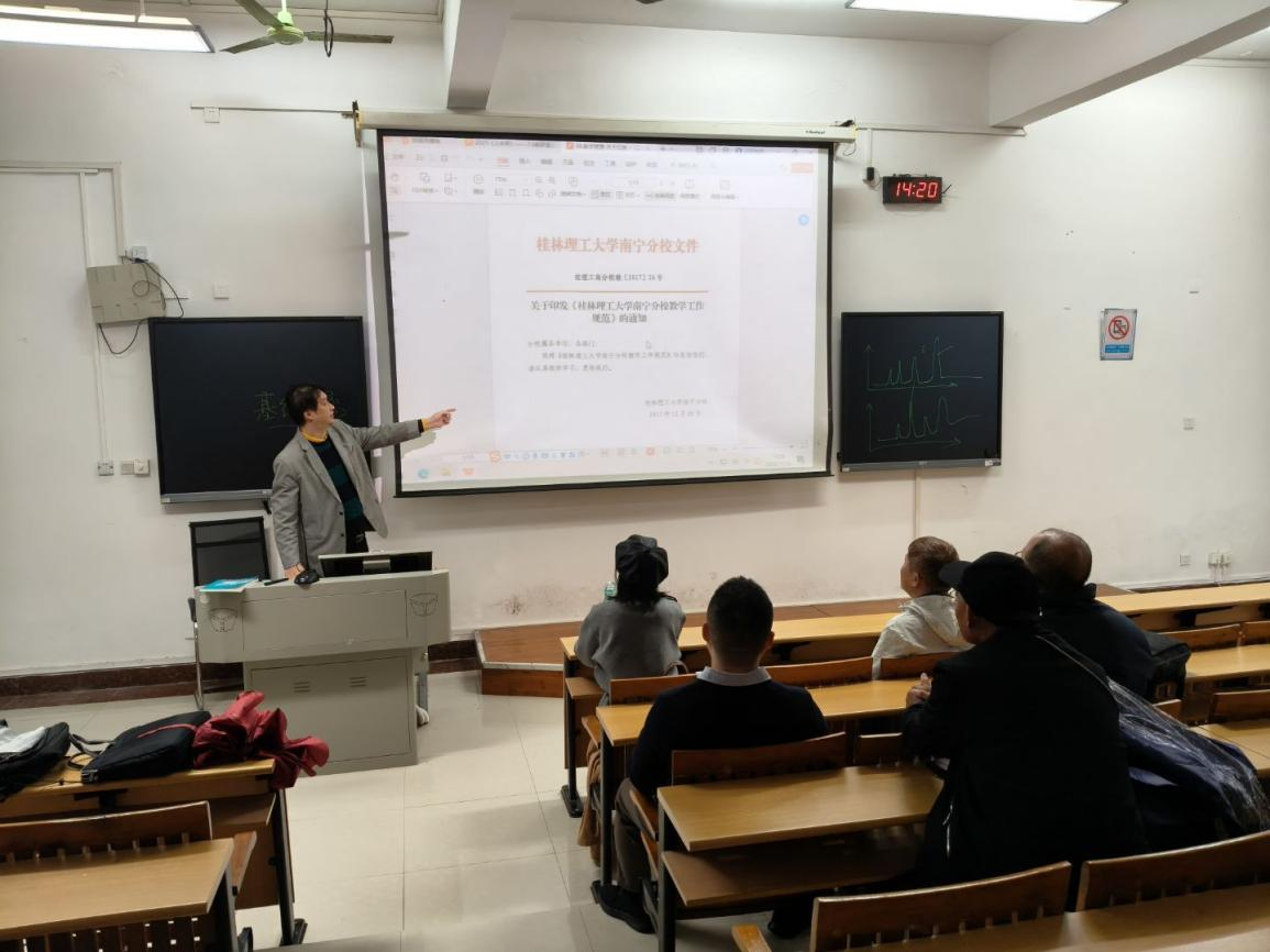 学习会上,教研室深入学习《桂林理工大学生修业年限管理办法》《桂林理工大学南宁分校教学工作规范》《南宁分校落实“十大工程”三年行动方案》《桂林理工大学教材管理实施细则》《桂林理工大学南宁分校学生参加各类竞赛管理办法》《桂林理工大学教育教学改革与研究项目管理办法》等规章制度。