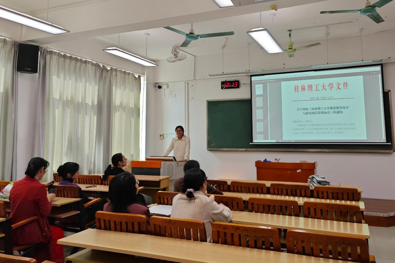 活动中,全体教师集中学习了《桂林理工大学南宁分校教学工作规范》《桂林理工大学教材管理实施细则》《桂林理工大学南宁分校组织学生参加各类竞赛管理办法》等教学管理规章制度。宋爱云传达了分校开展2025年度“教学质量月”活动的通知和具体要求,强调学习教学管理制度是落实立德树人根本任务、保障教学质量、推动教师职业发展的关键举措,全体教师要认真学习,深刻领会。