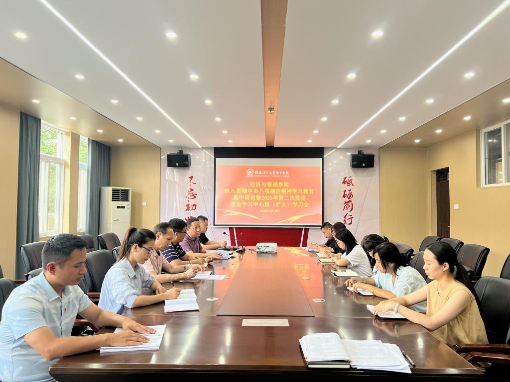6月30日,经济与管理学院在空港校区7205会议室召开深入贯彻中央八项规定精神学习教育集中研讨暨2025年第二次党委理论学习中心组(扩大)集中学习会。学院全体领导班子成员出席会议,党委理论学习中心组成员、党支部书记参加会议。会议由学院党委书记吕广文主持。