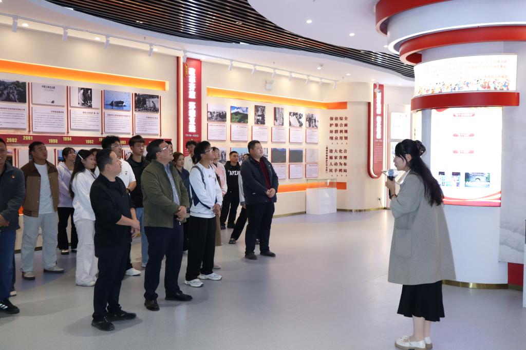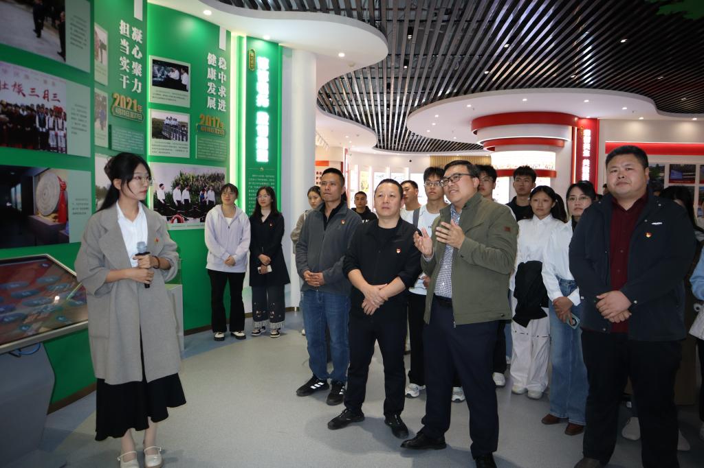 师生党员共同参观“红+绿”思政教育基地展厅,展厅系统展现红色文化铸魂与绿色发展实践的深度融合,让学生党员直观感受精神传承与时代使命的紧密关联,进一步筑牢理想信念根基。