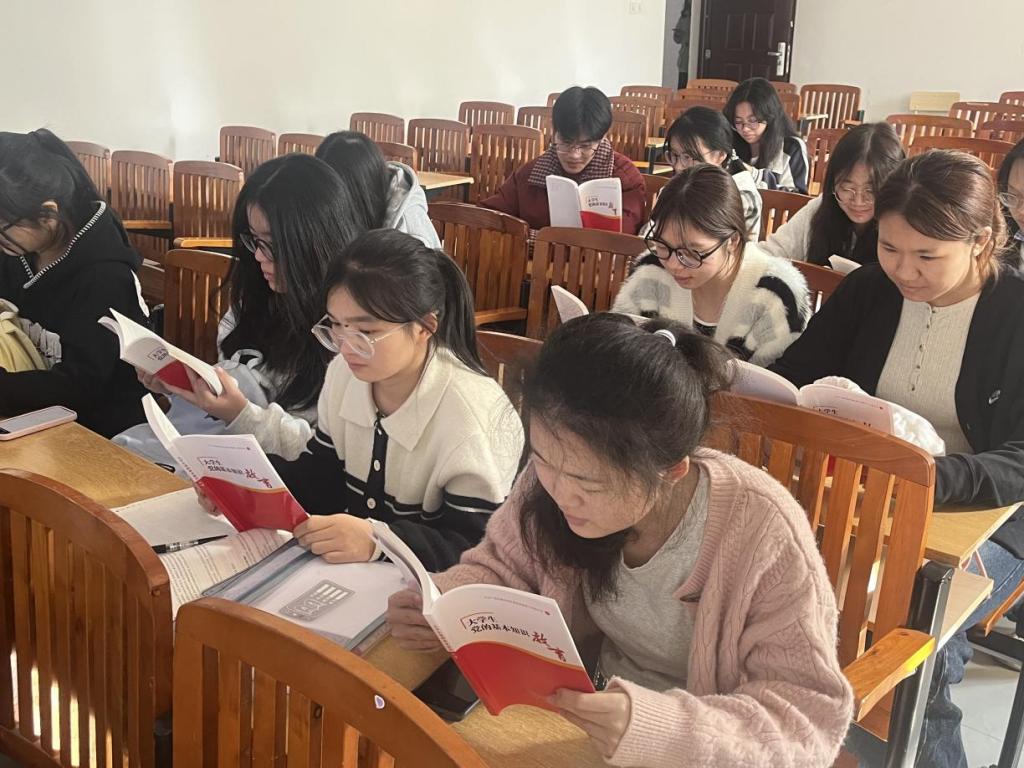 活动以班级为单位,通过集体领学、心得分享、共同朗读等多种形式开展。学院辅导员全程参与指导,带领新生系统学习党的历史沿革、性质宗旨、组织原则等核心内容,重点解读新时代党的创新理论。阅读过程中,新生们认真标记重点、交流学习感悟,围绕 “青年与党的使命”“新时代大学生的责任担当” 等话题展开热烈讨论,形成了比学赶超的良好学习氛围。