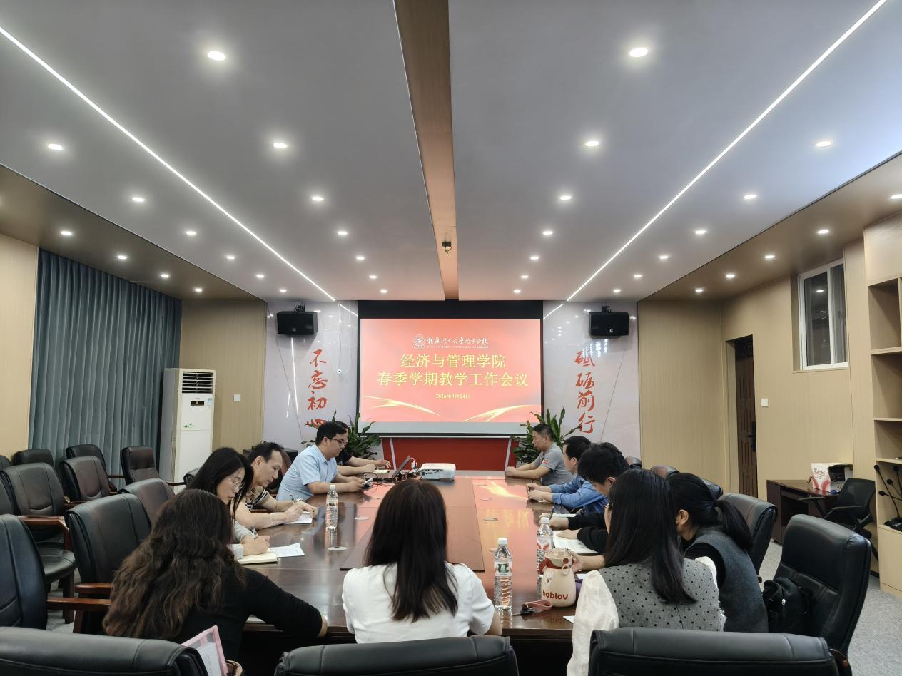 3月24日下午,经济与管理学院在7205会议室召开2026年春季学期教学工作会议。学院领导班子及各教研室主任参加会议,会议由学院副院长李军文主持。