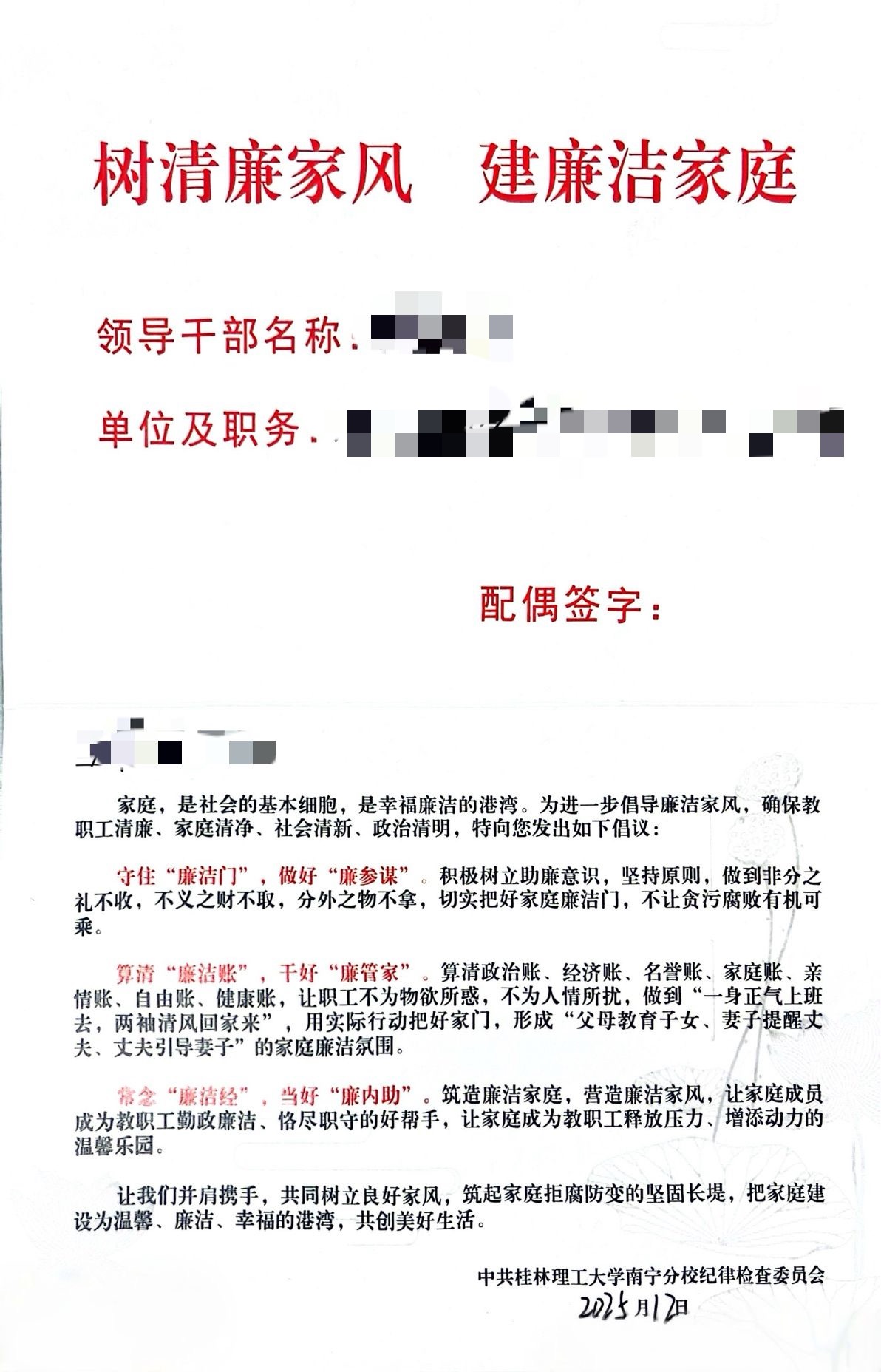 下一步,南宁分校纪委将以此次家访为契机,深化家庭助廉建设,用清廉家风涵养校风,推动校园政治生态持续向好。