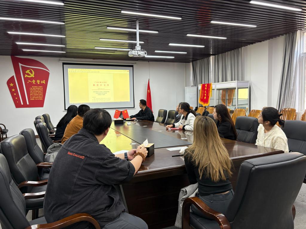 2025年11月27日下午,新媒体艺术教研室在2206会议室进行了分校教学文件学习活动,本次学习由卢晨老师主讲,围绕《桂林理工大学南宁分校岗位设置聘用与考核实施办法》文件进行解读学习,全体教研室成员参与,共同对该文件内容进行了学习探讨。