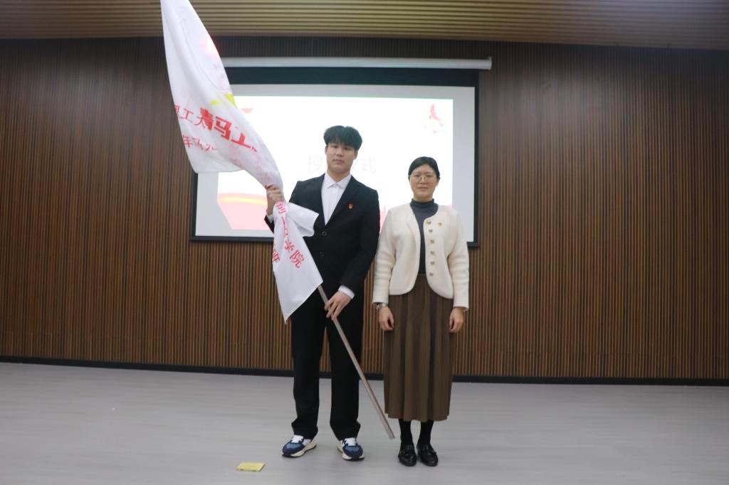 开班仪式在激昂的国歌声中拉开帷幕。学员代表、第五期“青马班”班长成浩同学代表全体学员作学习表态发言。吕顺岷为第五期“青马班”学员代表赠书。蒙童慧向培训班授旗。
