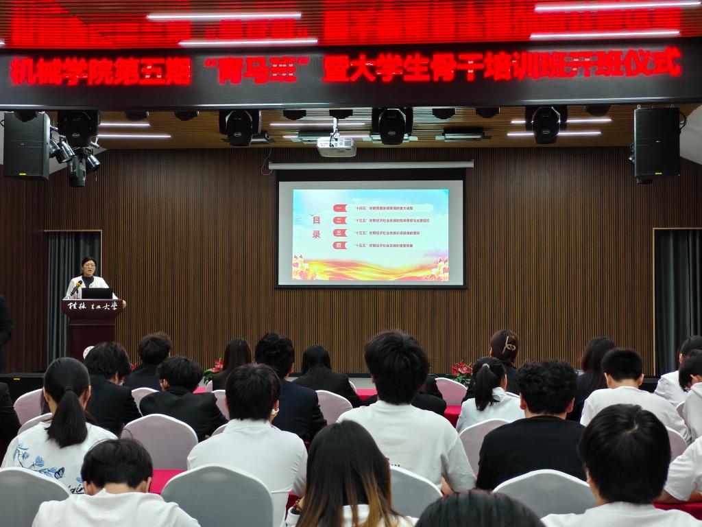 11月27日下午,我院第五期“青马班”暨大学生骨干培训班开班仪式在大学生活动中心举行。学院党委书记蒙童慧、团委书记吕顺岷、党建工作中心指导老师凌铭、易班工作站指导老师蓝慧萍出席仪式。我院青马班全体学员参加仪式。