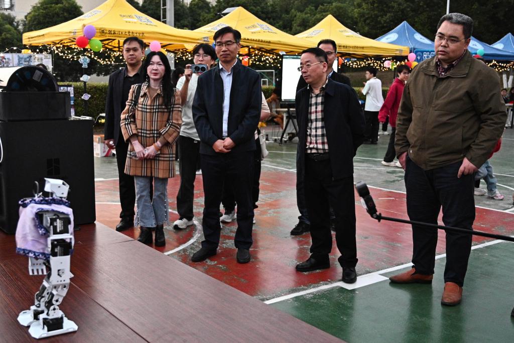 12月10日下午,南宁分校第二十四届“创新杯”科技活动月科技作品展在空港校区篮球场举行。这次活动展示了我院近三年校内外科技能赛中的部分优秀作品:机器人舞蹈、写字机、3D打印机等产品,还设置了数控车工、数控铣工、精雕加工三大展区,吸引了众多师生及科技爱好者前来参观。