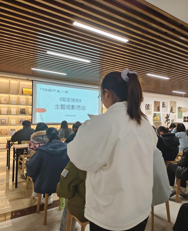 为传承红色基因、筑牢理想信念,12月26日晚,图书馆举办第二十期“书影随行”活动,组织百余名学生集中观看央视节目《延安诗会》并开展观后分享,让红色诗韵浸润青年之心。