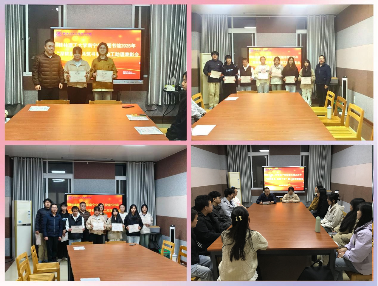 1月9日晚,图书馆在研讨室召开2025年度勤工助学总结暨表彰会。本次会议以“深耕服务,共筑书香”为主题,旨在对年度工作进行总结并表彰在图书馆勤工助学岗位上表现优秀的同学。
