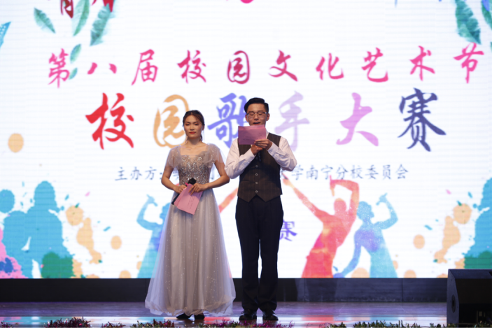 为庆祝中国共产党成立100周年,丰富同学们的校园文化生活,2021年5月14日星期五下午18:15分在桂林理工大学南宁分校体育馆隆重举行“青春心向党,歌唱新时代”校园歌手大赛决赛。出席本次大赛的领导有:分校团委副书记--谢欢老师;计算机应用系团总支书记--黄观媛老师等老师。