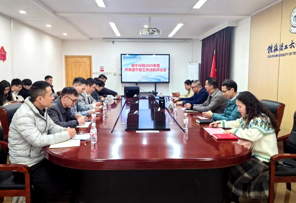 12月25日上午,南宁分校在空港校区行政楼417会议室召开2025年度共青团干部工作述职评议会。南宁分校党委副书记唐承泽出席会议。党委学生工作部、团委负责人,各学院团委书记及学生代表参加会议。