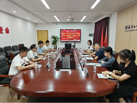 9月25日下午,广西学校体育卫生艺术学会龙狮分会常务副会长、广西师范大学体育与健康学院副院长张智,广西师范大学体育与健康学院教授、博士生导师陆元兆一行六人到南宁分校开展“2025年广西学生舞龙舞狮锦标赛”筹备进度专题调研。南宁分校副校长李培良,南宁分校体育教学部领导及教师陪同调研。