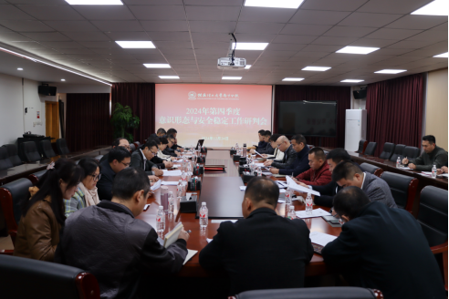 12月24日上午,南宁分校在空港校区行政楼416会议室召开2024年第四季度意识形态与安全稳定工作研判会。南宁分校党委书记李雨、副书记唐承出席会议,各职能部门主要负责人,各学院党委负责人,基础学科部、体育教学部负责人参加会议。会议由南宁分校党委副书记唐承泽主持。