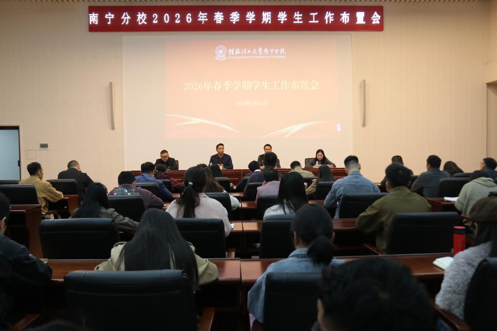 为深入学习贯彻习近平新时代中国特色社会主义思想,全面落实学校开学初工作部署,明确新学期学生工作重点任务与推进举措,确保各项工作开好局、起好步,3月10日上午,南宁分校2026年春季学期学生工作布置会在图书馆报告厅召开。分校党委副书记唐承泽出席会议并讲话,全体学工人员参会。