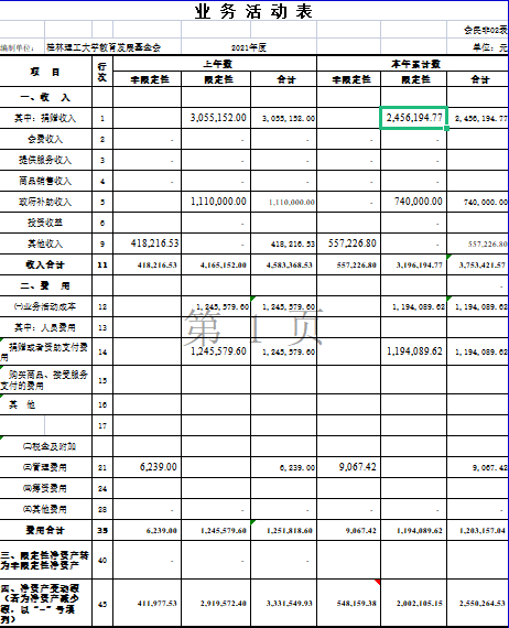 桂林理工大学教育发展基金会2021年度收入和支出明细
