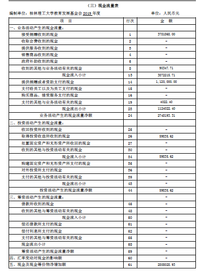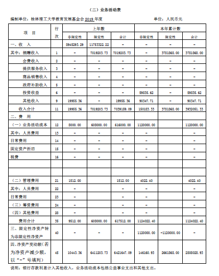 桂林理工大学教育发展基金会2019年度收入和支出明细