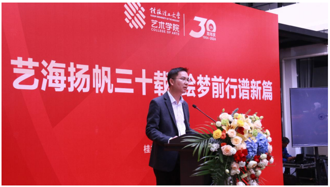 学院党委书记黄敬秀、院长孙远志出席活动。学院党委副书记、纪委书记黄传伟、学院副院长符晗、黄建标,离退休老同志陈伟利、黄立新,校友陆海波、何昭、陈桂福、吴德华、肖红东、尹旭红、韦志峰、肖涛、付勇、张飞、冀志磊、文春柳、环洪彬、黄亮、曾建文、覃大壮、韦一梅、徐建、邓博、覃福兴、叶锋、杨雪、聂杰荣、秦荣华、段吟风、严乐、陈怡昌、王雅琴等,艺术学院全体师生参加活动。活动在艺术学院博雅楼进行。
