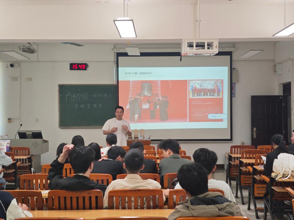 2025年11月14日16时,广西华绿生物科技有限责任公司专场招聘会在我院探源楼5205教室成功举行。本次招聘会由公司人事经理余英祥主讲。