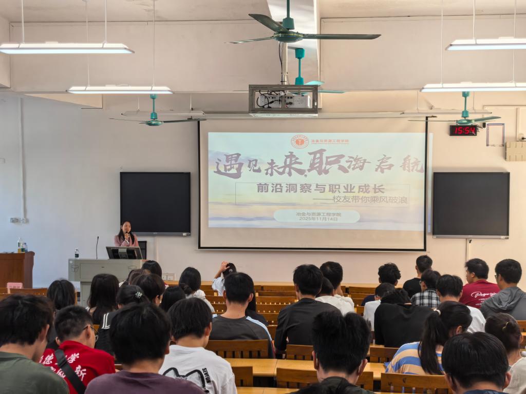 11月14日中午,我院邀请河南中孚实业股份有限公司优秀校友兰海波在启智楼8201D教室为在校学生开展职业生涯规划分享会。兰海波校友结合自身在冶金领域的求学与职业经历,为学院学子带来一场紧扣专业特色的实用指导,会议由学院学工组长方艳主持。