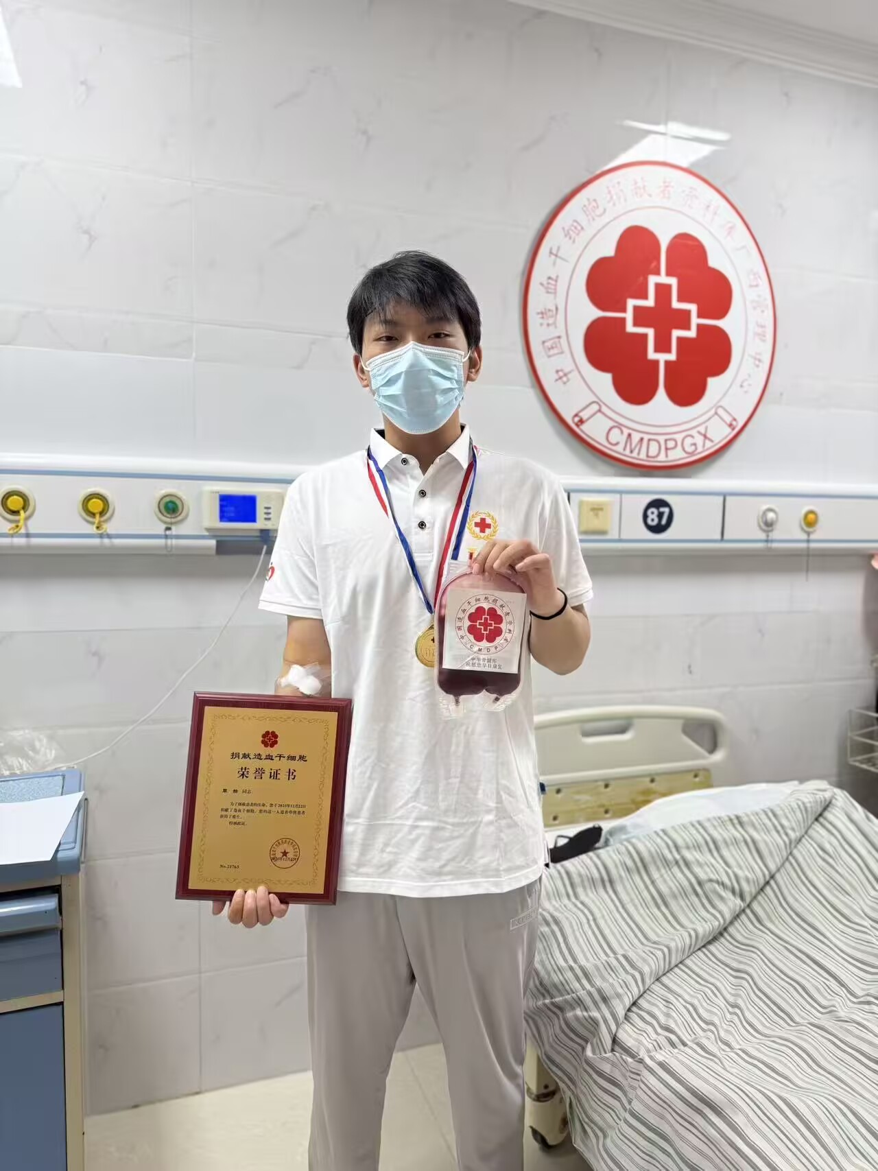 覃赫同学以实际行动弘扬人道主义精神,彰显了关爱生命、奉献社会的高尚品格。其行为不仅为潜在的病患带去了重生希望,也为全体同学树立了热心公益、勇于担当的榜样。让我们以他为榜样,传递爱心,温暖社会。