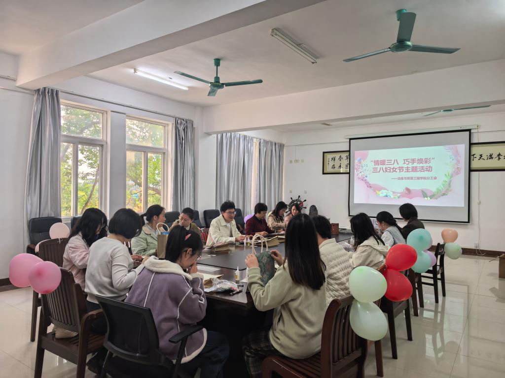 3月11日下午,我院在5207会议室举办了以“情暖三八·巧手焕彩”为主题的三八国际妇女节庆祝活动。本次活动特邀全院女教职工共同参与宋锦手工包制作体验。