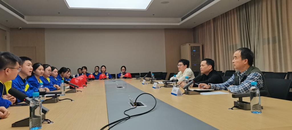 在防城港市中丝路新材料科技有限公司,该公司人力资源部部长丁建鹏陪同梁尚尉一行实地考察了该公司生产现场建设、员工宿舍、食堂等情况。梁尚尉一行还与该公司在南宁分校合作开展的2025年氧化铝项目储备大学生集训营中部分分校毕业生进行了座谈交流。梁尚尉对公司建设进展速度表示惊讶和高兴。他希望在前期良好合作的基础上,在学历提升、技术服务等方面再深化双方合作,再结新的硕果。同时勉励毕业生珍惜工作机会,虚心学习,善于总结,早日完成职场人的角色转变,为母校、为公司做出应有的积极贡献。