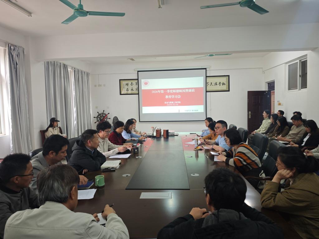 为进一步加强教师队伍建设,筑牢意识形态阵地,提升教职工思想政治素质和职业道德水平,3月13日,冶金与资源工程学院在探源楼5207办公室召开2026年第一季度师德师风暨廉政教育学习会。学院党委书记韦国才、院长何贵香等领导班子成员及全体教职工参加会议。会议由韦国才主持并作专题发言。